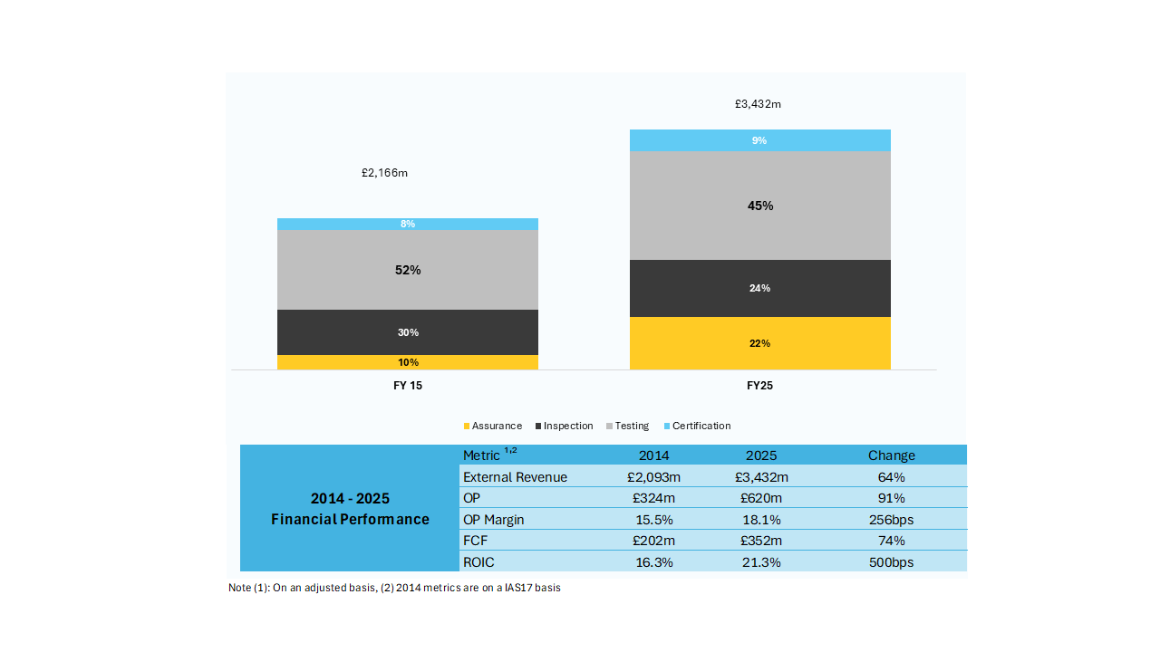 As outlined in our CMD in 2023, our focus is on investing in high growth margin accretive areas be that organically or through acquisition. Over the last decade, we have made high-growth, margin accretive acquisitions that augment the Intertek offering. Of note, since 2015, Assurance revenues have increased at a CAGR of 13%.