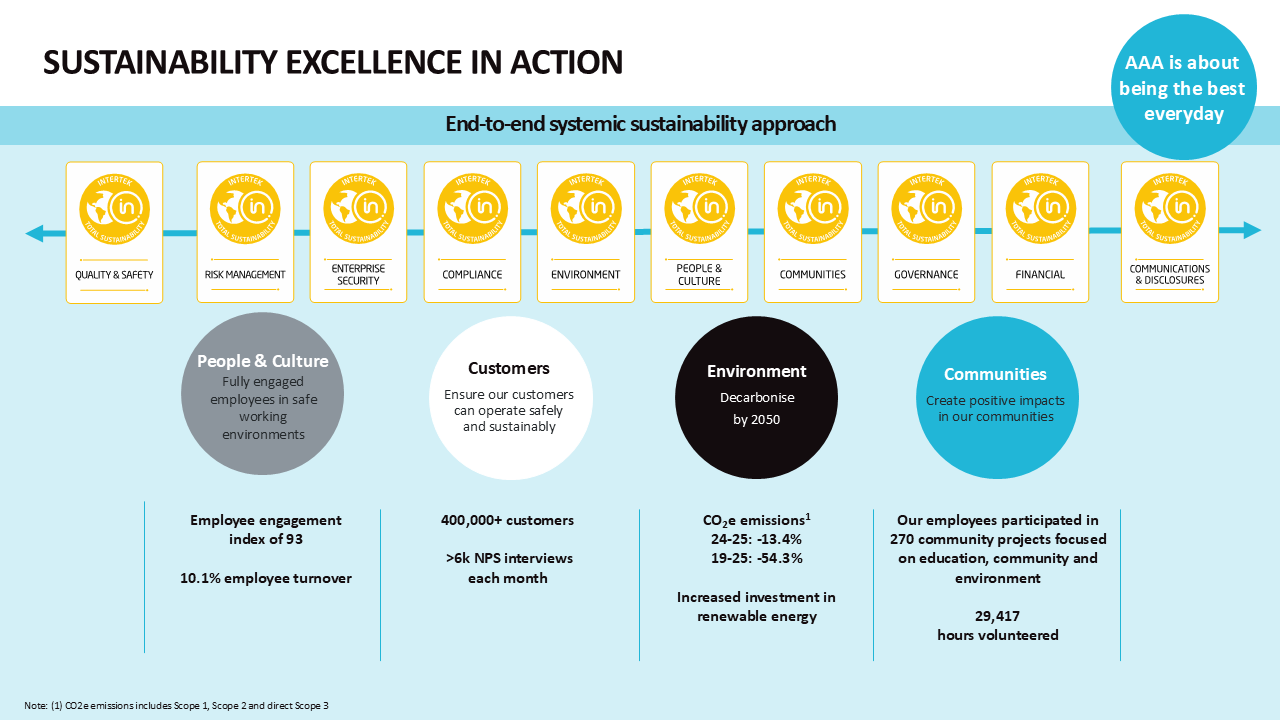 Our Sustainability Excellence approach, implemented across every Intertek operation, ensures that we deliver on all aspects of sustainability. It gives us the structure and discipline we need to deliver against our performance targets on areas such as health and safety, customer satisfaction, operational emissions, employee engagement, diversity and inclusion, and compliance.